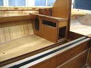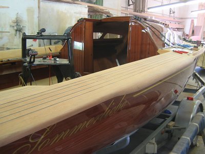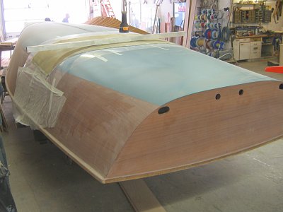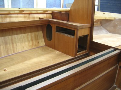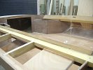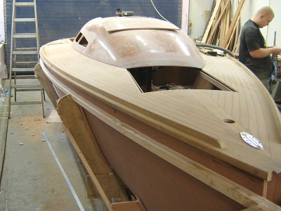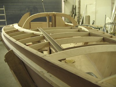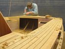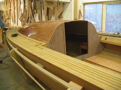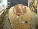 Auch der Positivkern für den Kajütaufbau ist so ausgelegt, dass sowohl flache und kurze Formen für Regattaversionen, als auch höhere und längere für Tourenversionen darüber formverleimt werden können. Der 20er auf den folgenden Fotos ist etwas höherbordig mit etwas längerem Kajütaufbau und sowohl für Touren, als auch als Regattaboot gedacht. Um die Kajüte auch sinnvoll nutzen zu können, ist sie von Streckern und Fallen weitgehend freigehalten, ohne dadurch jedoch die Regattatauglichkeit in Frage zu stellen.
