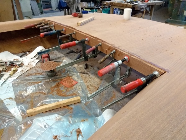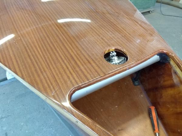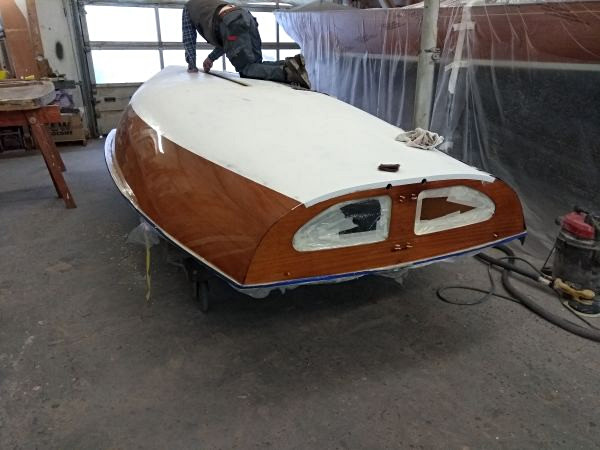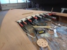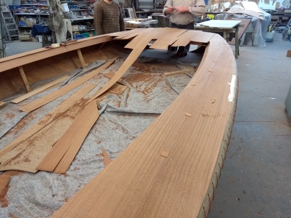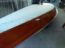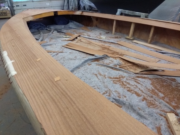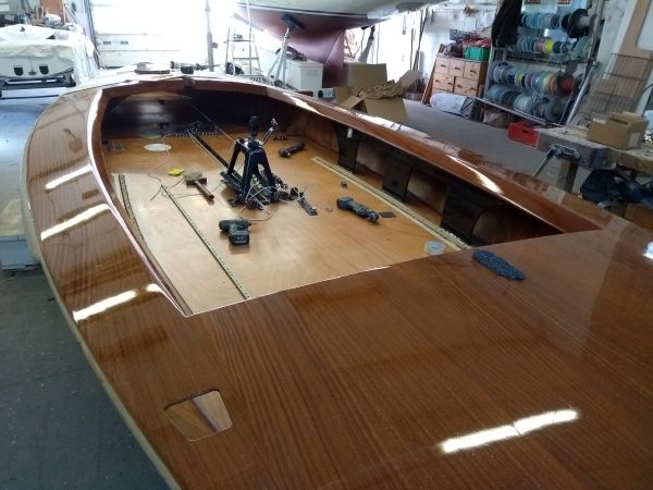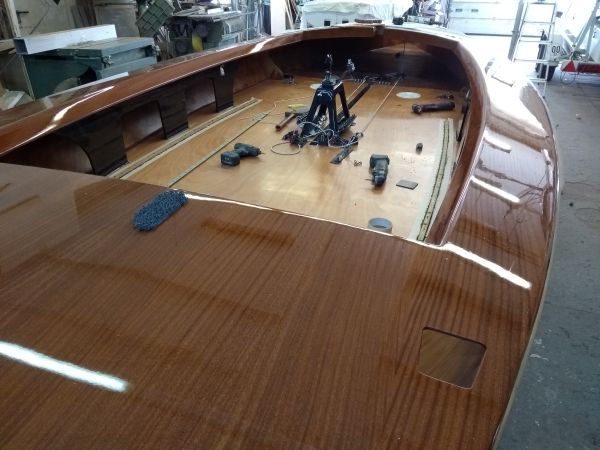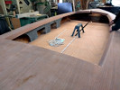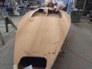 Fotos von Reparatur und Facelifting einer älteren formverleimten H-Jolle Die H-Jolle (Baujahr ca. 1990) bekommt einen komplett neuen Holzdoppelboden, die Seitendecks werden deutlich verschlankt und das Deck bekommt ein neues Deckfurnier.