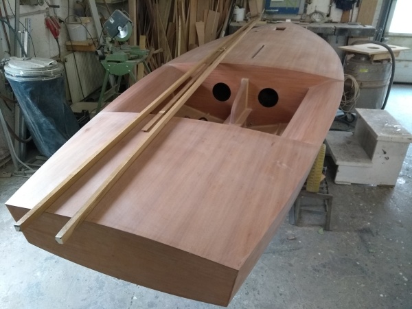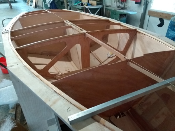 Selbstbau einer OK-Jolle, wir unterstützten den Eigner mit Rat und Tat