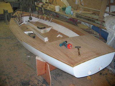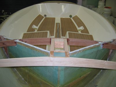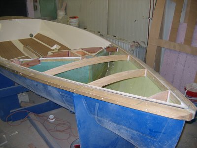 Bau der ersten O-Jolle der neuen "Ü50"-Form in der Variante mit GFK-Sandwich-Doppelboden und Holzdeck zurück zur O-Jollen Hauptseite