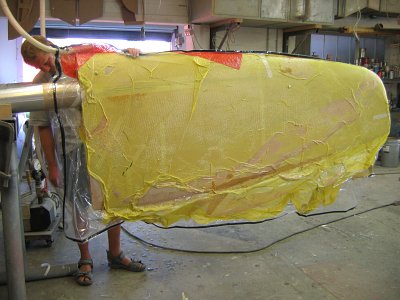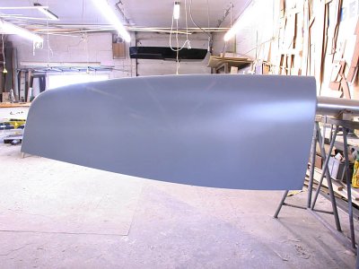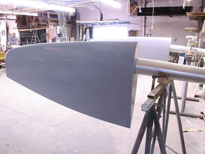 Ein etwas speziellerer Ruderbau: Dabei handelt es sich nicht etwa um den Prototyp für ein profiliertes O-Jollenruder, sondern um das doch etwas größere Ruder für die 19 m lange Hanse 630e aus Greifswald: zurück zur Seite "Sonderanfertigungen"